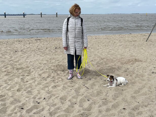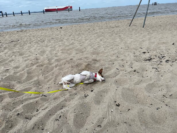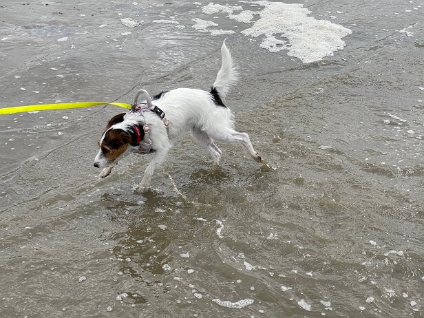 Ob das mit dem Schwimmen was wird? So ganz geheuer ist Mila das Meer noch nicht 🤪 Morgen versuchen wir das Ganze mal nicht über eine Treppe sondern vom sandigen Strand aus