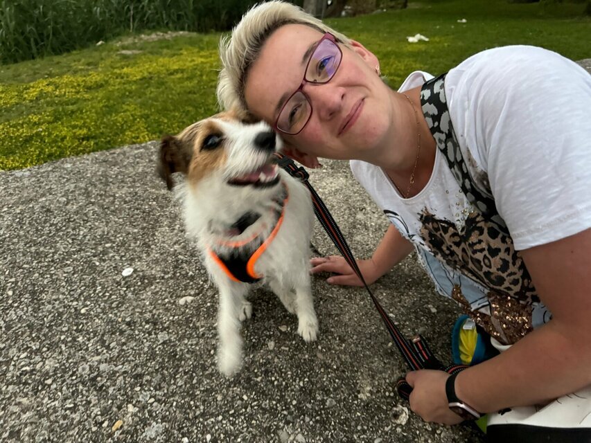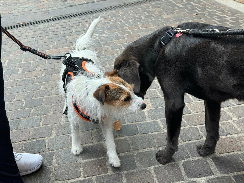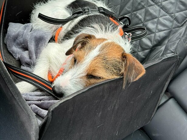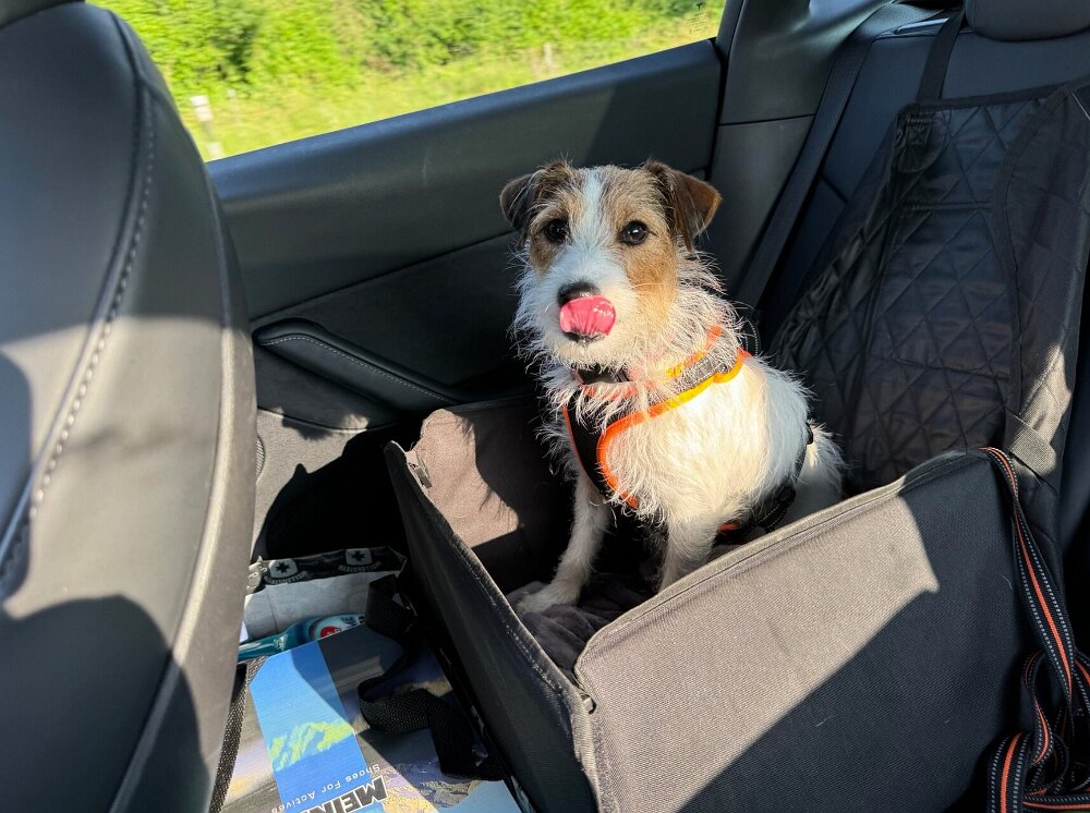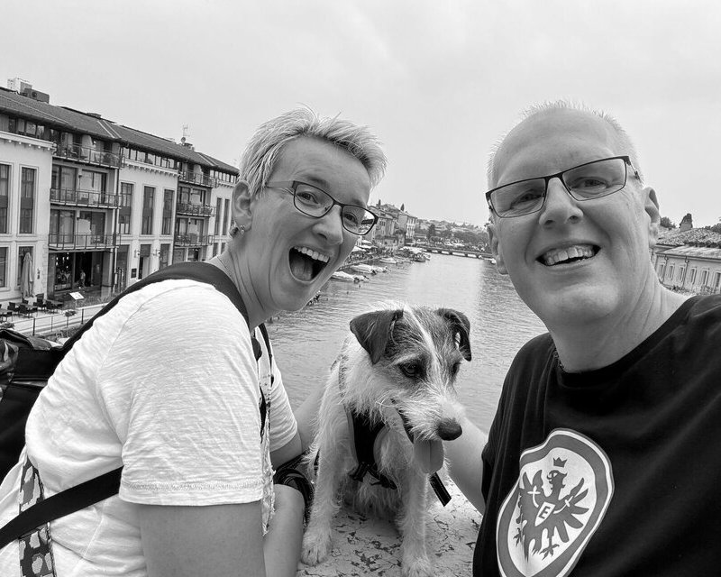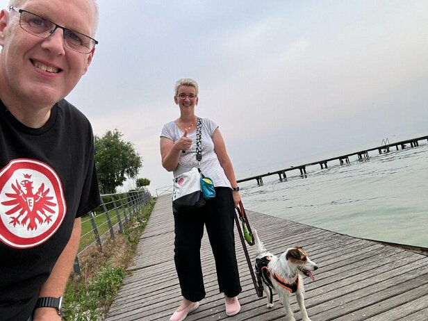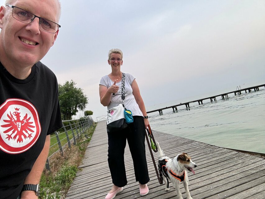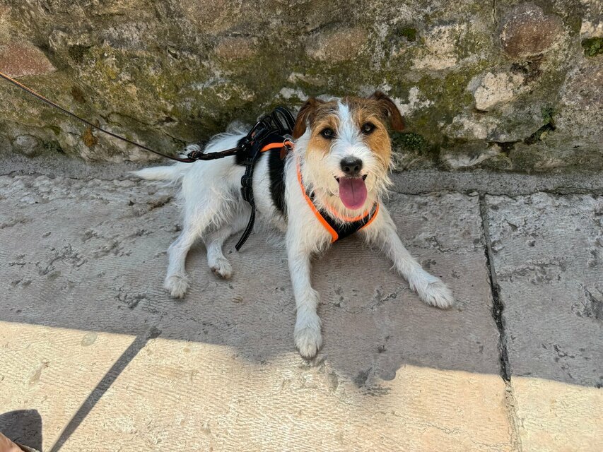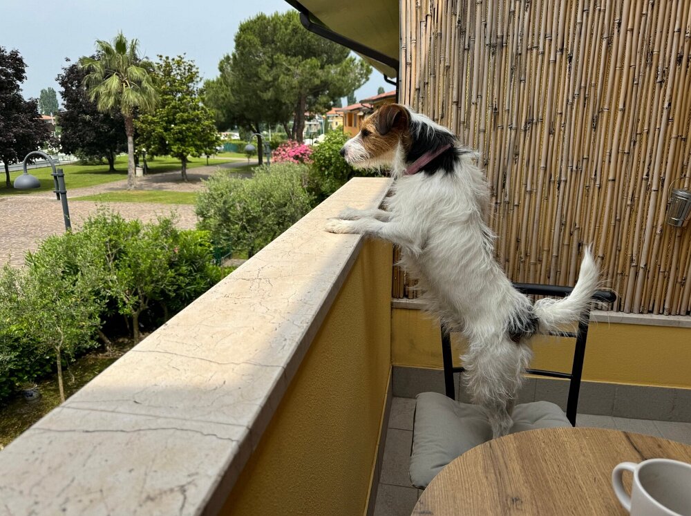 Ich höre da unten doch ständig Dinge, die ich nicht sehen kann. Mal nachschauen. Herrchen und Frauchen haben das aber sofort wieder unterbunden. Diesen einmaligen Blick kann mir aber niemand mehr nehmen.