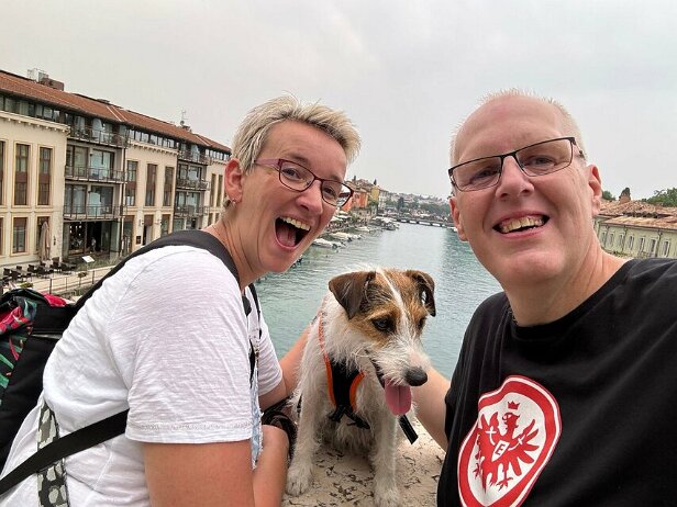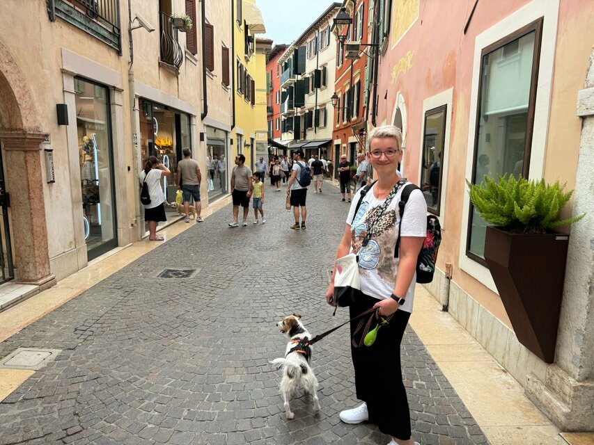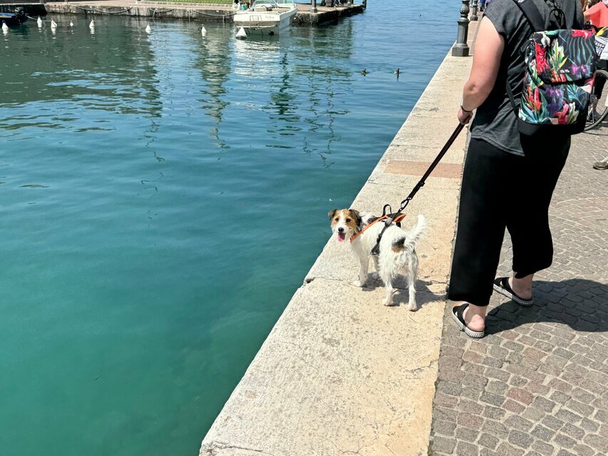 Abendliche Gassirunde in Sirmione mit Drink an der Strandbar. Das Wetter ist super trüb und es sieht nach Regen aus. Egal, was soll’s