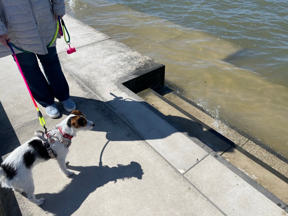 Ob das mit dem Schwimmen was wird? So ganz geheuer ist Mila das Meer noch nicht 🤪 Morgen versuchen wir das Ganze mal nicht über eine Treppe sondern vom sandigen Strand aus