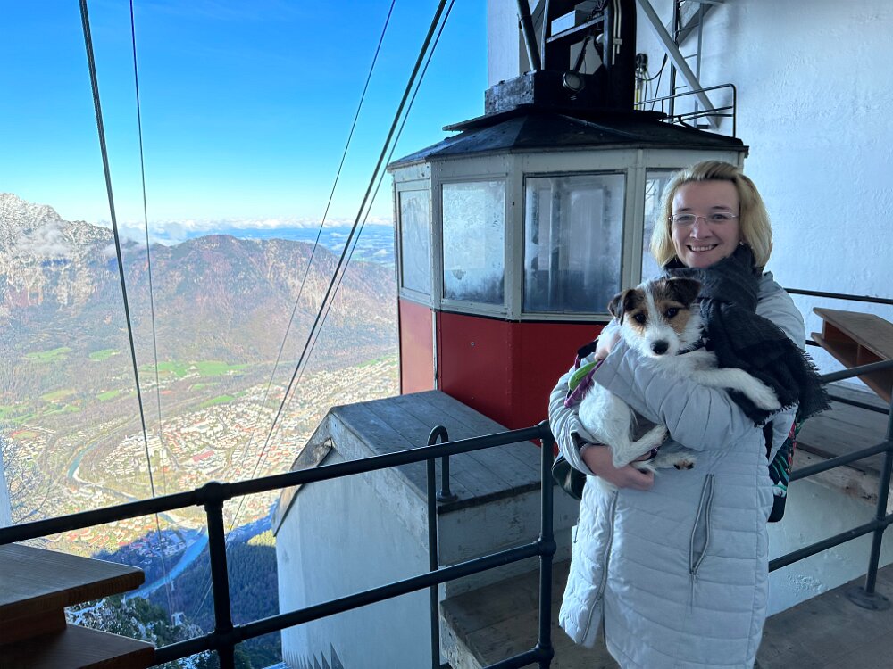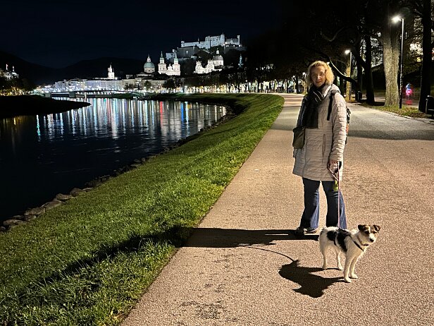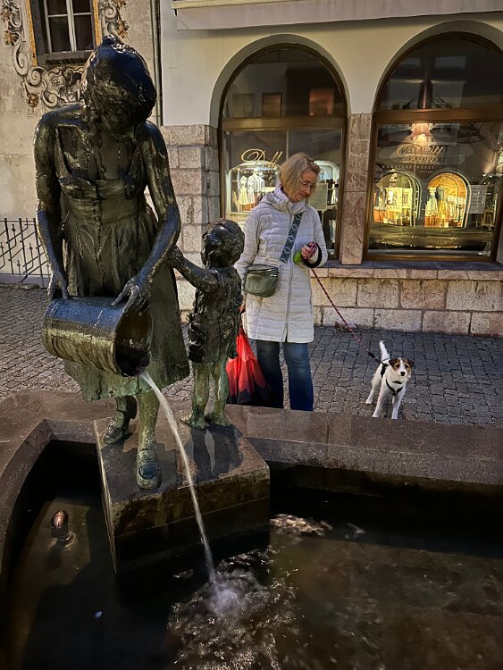 Erster Spaziergang durch Berchtesgaden. Ab morgen wird das Wetter besser. Man muss Mila überreden, vor die Tür zu gehen.