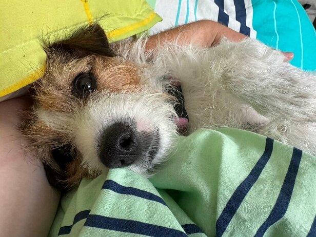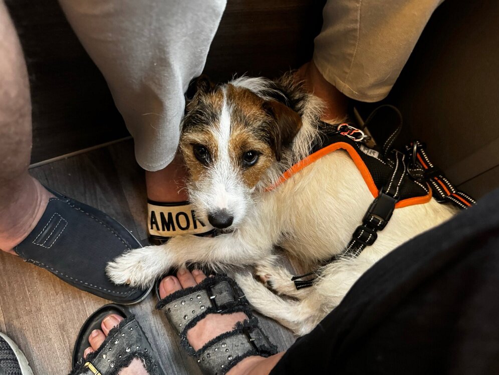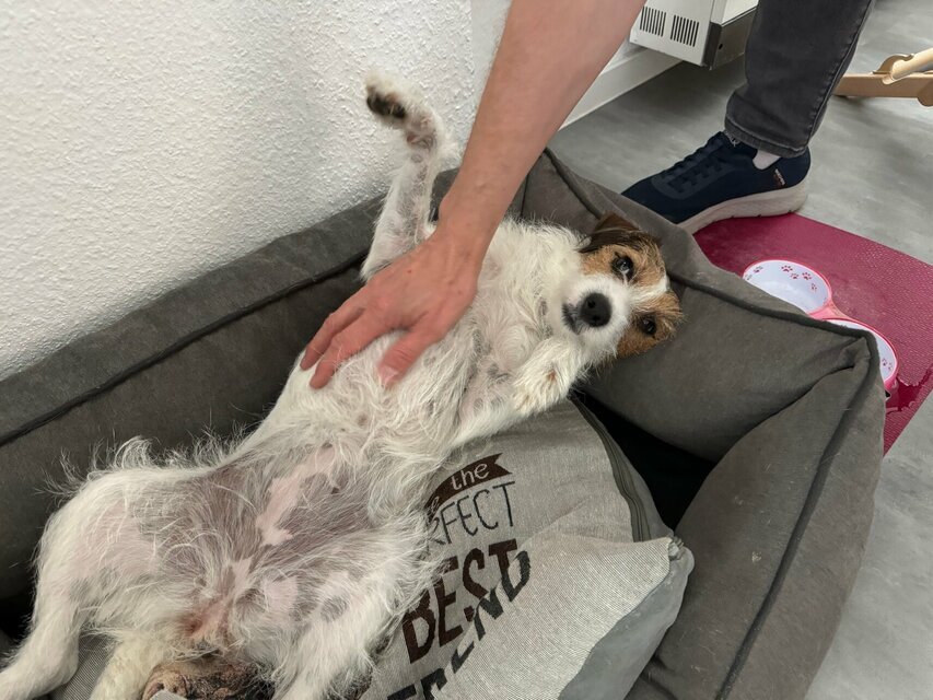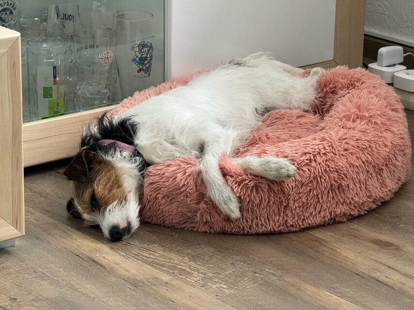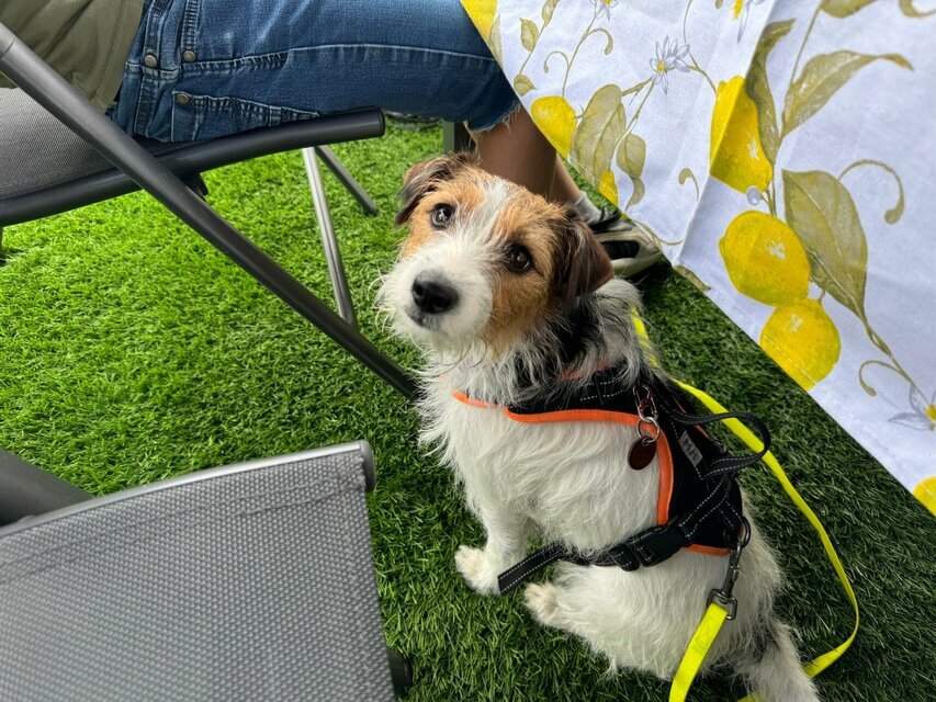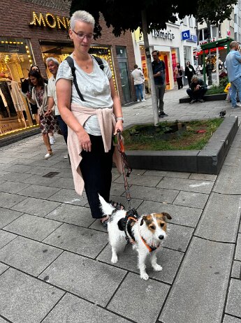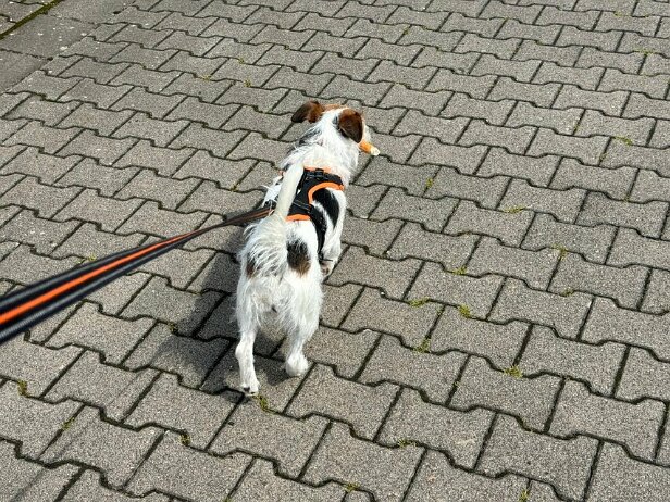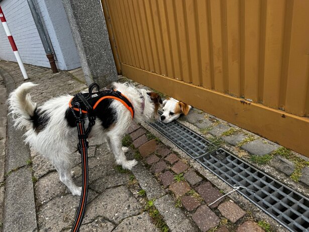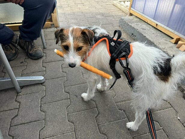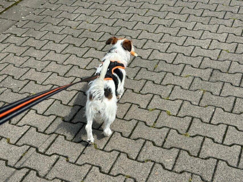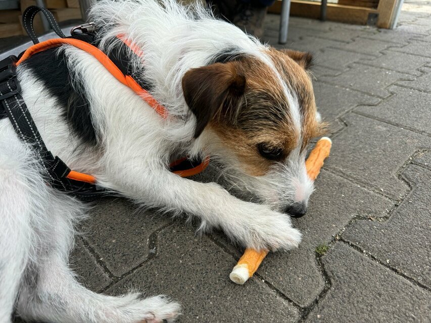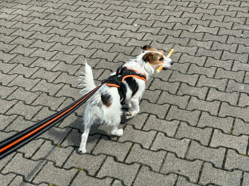 Ich hab was ganz Leckeres von meinem Herrchen bekommen. Da muss ich bei der Gassirunde gut drauf aufpassen