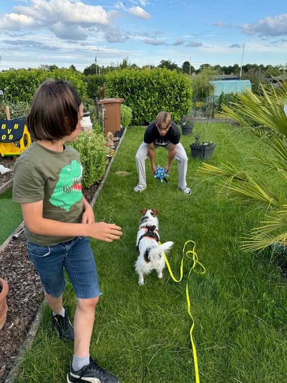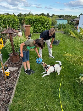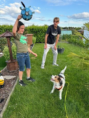 Fußballspielen mit 2 Profifußballern: Timo spielt in der 1. Mannschaft vom FSV Frankfurt, Tim in der Jugend als Torwart beim FSV Mainz 05. Und Mila hat richtig viel Spaß