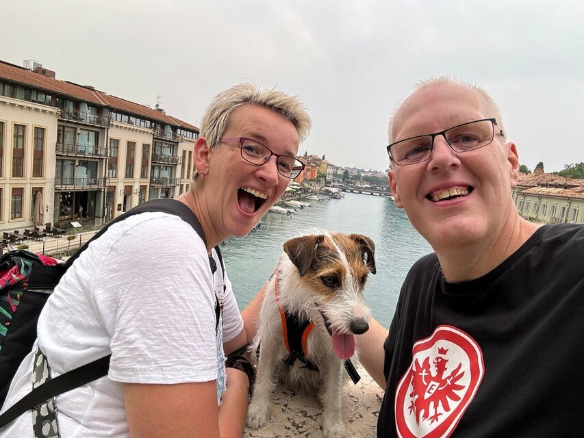 Abendliche Gassirunde in Sirmione mit Drink an der Strandbar. Das Wetter ist super trüb und es sieht nach Regen aus. Egal, was soll’s