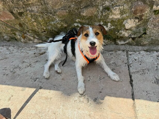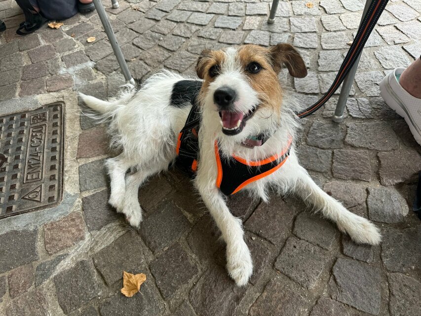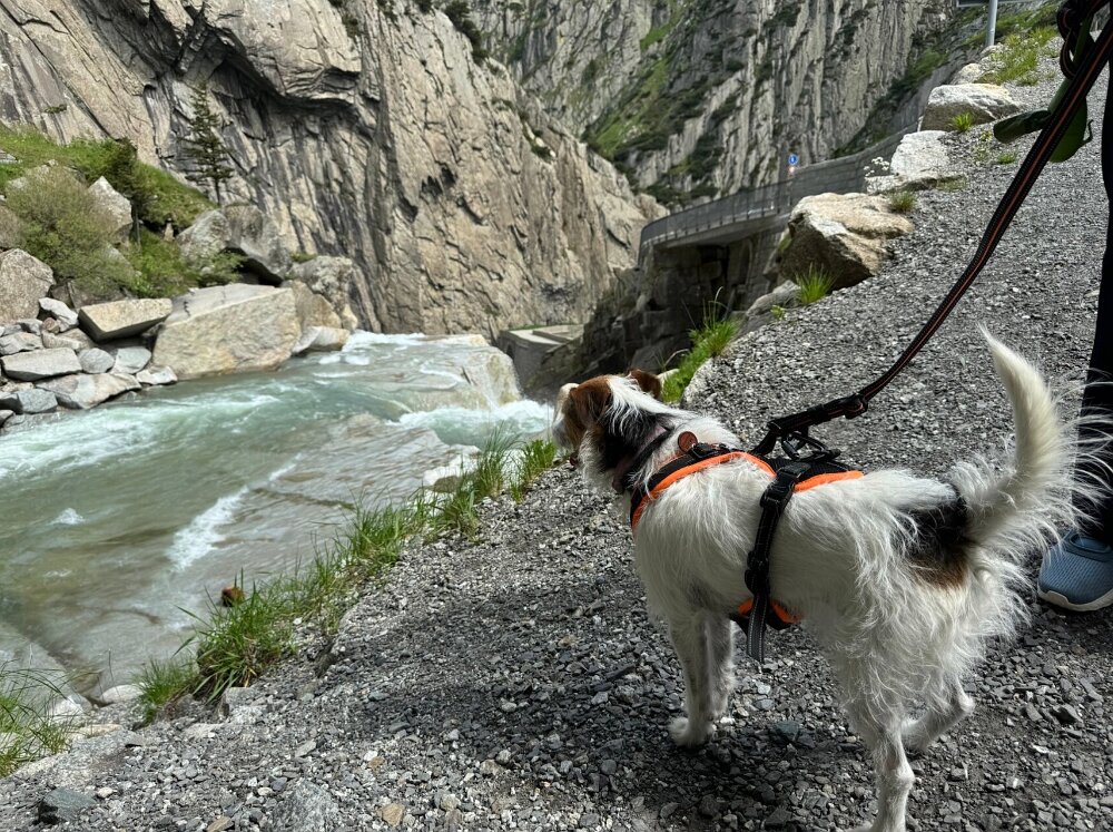 Ich höre da unten doch ständig Dinge, die ich nicht sehen kann. Mal nachschauen. Herrchen und Frauchen haben das aber sofort wieder unterbunden. Diesen einmaligen Blick kann mir aber niemand mehr nehmen.